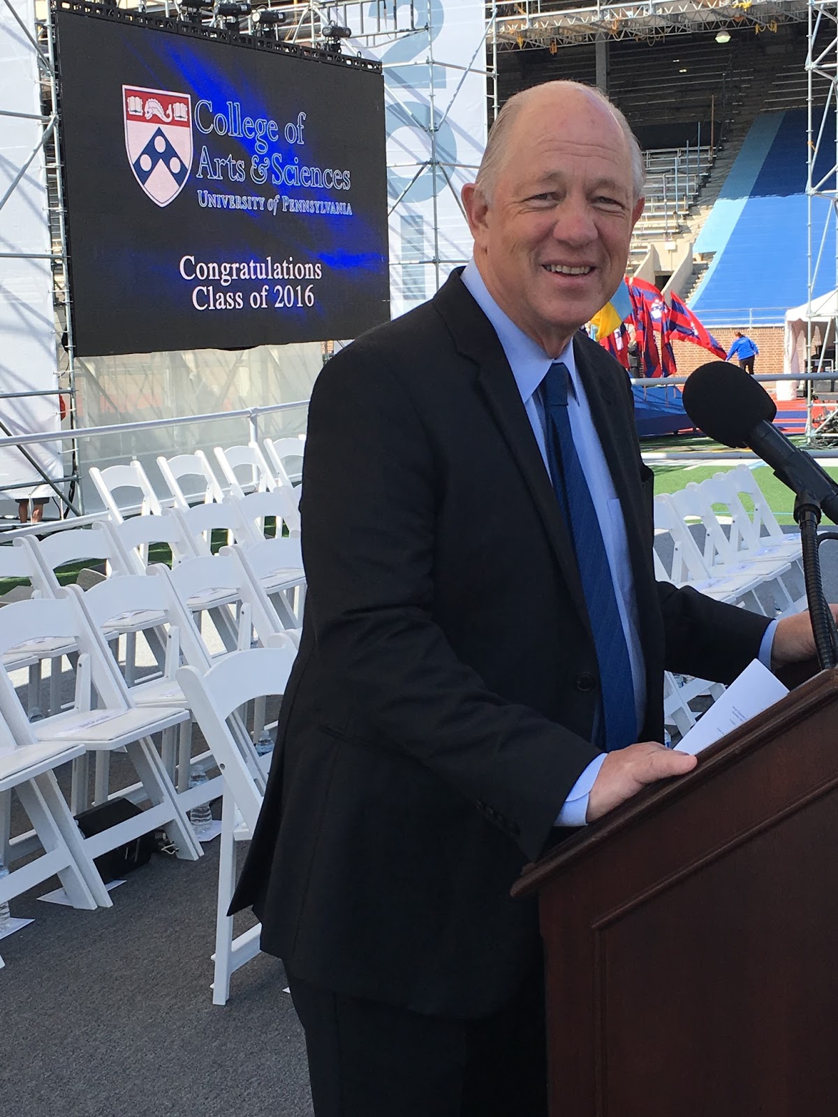 First, as much as I appreciated the generous introduction, that is not really who I am, or at least is only a part of who I am. I am also the son of a loving mother who died from a drug overdose before I completed my education. I was a principal architect of three losing Democratic presidential primary campaigns, one of which spent more than four years paying off debt. I’m happily married, but only after a first marriage that failed. And after I graduated from Penn I went straight to law school and then failed the bar exam. Twice. As the infomercial says, ‘wait, there’s more!’ But I’ll spare you.