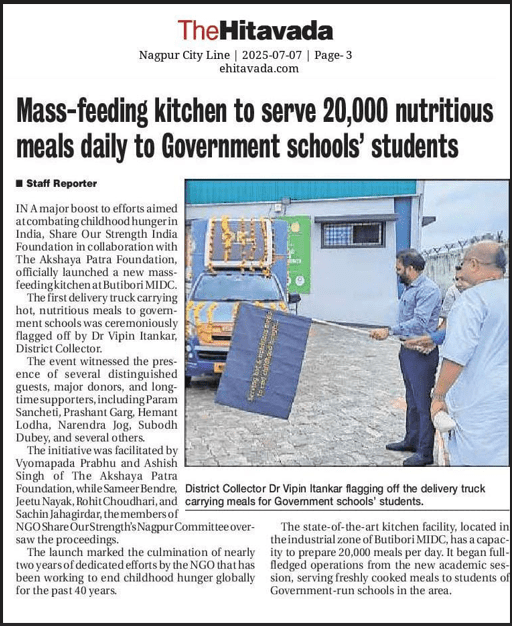 On July 2nd of 2025, the first day of a new academic session for kids in India, Share Our Strength and Akshaya Patra officially launched a new mass-feeding kitchen in Nagpur with the capacity to serve 20,000 meals a day. This milestone comes after nearly two years of collaboration and marks a significant stride to supplement the government’s effort to end childhood hunger in India.
