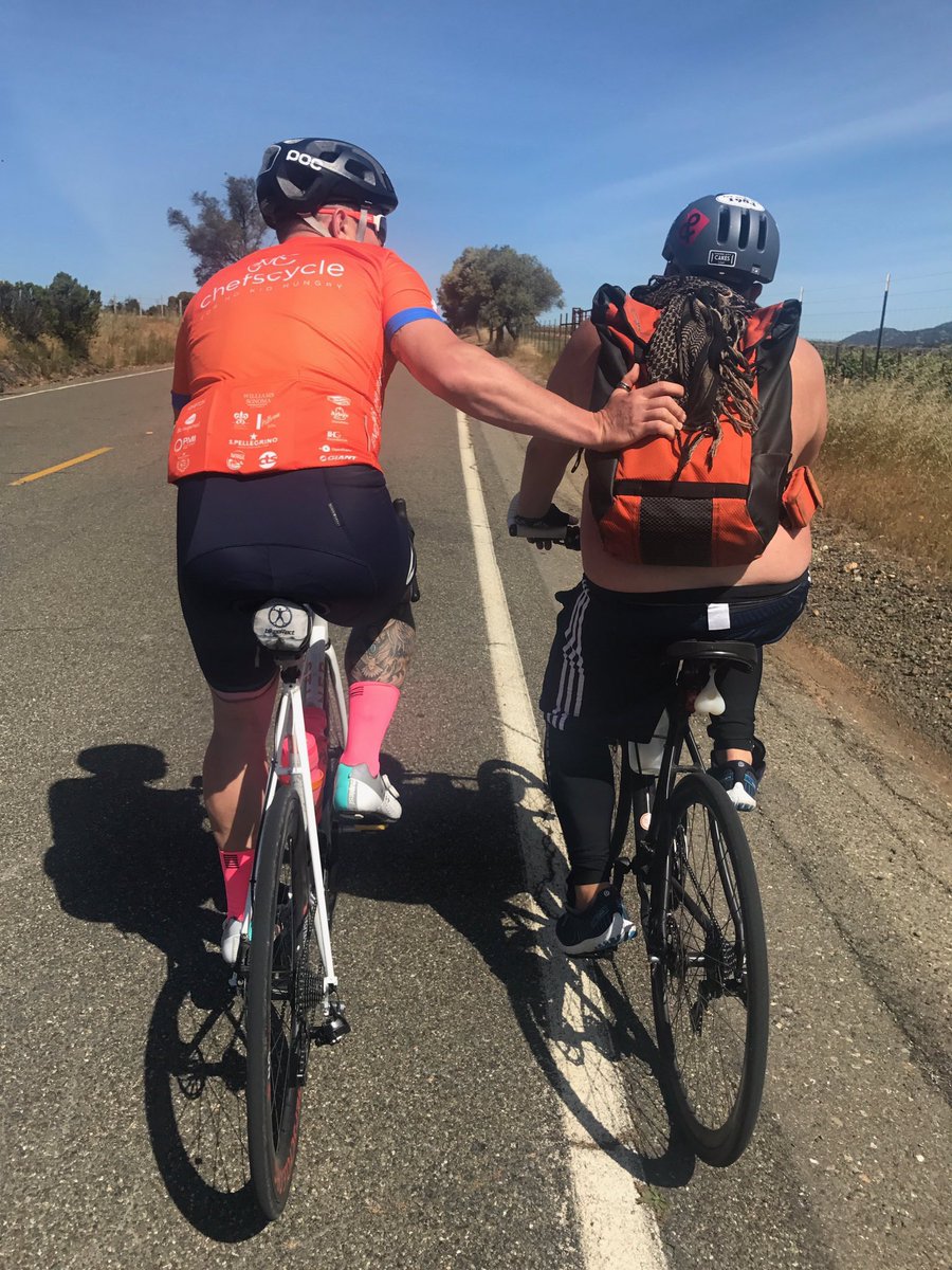 Each night chef Travis Flood, after riding 100 miles, cooked dinner for everyone. Driving up I-5 the night before the ride, a gust of wind tipped over the trailer carrying his equipment. He lost everything. Jason Roberts, Mary Sue Milliken, and others said “ let’s share our strength” and called vendors, suppliers and others to replace what Travis lost. Standing next to his makeshift cinderblock grill in the hotel parking lot, Travis told me “I came from a divorced family and so memories of Christmas, Thanksgiving and other traditions just represent stress to me. I still don’t look forward to them. What I look forward to all year are these three days – being with this family.”